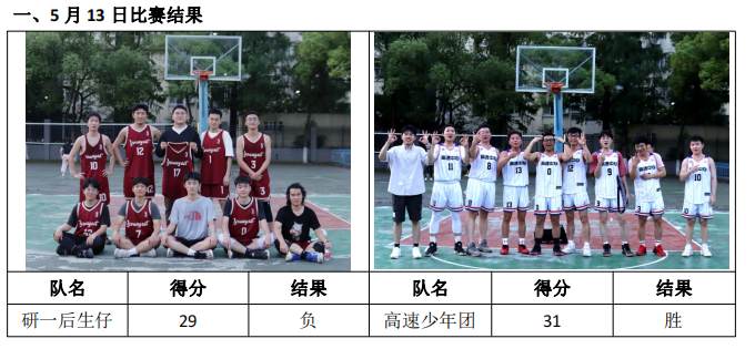 5 月 13 日篮球赛比赛战报及后续比赛通知