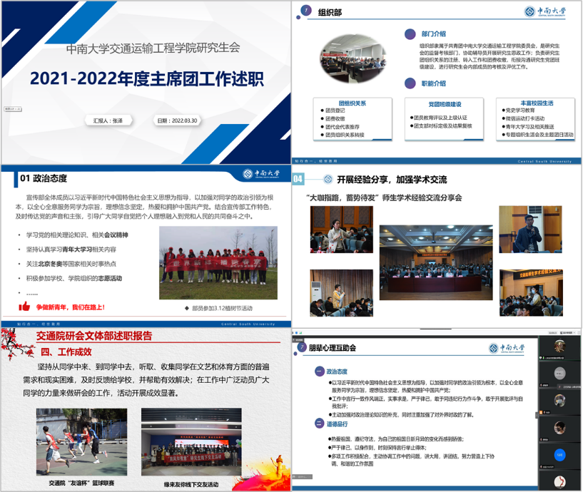 3月30日下午2点30分,交通院分团委、学生会及韩国无码会述职评议会以线上腾讯会议的形式召开。本次会议由学生会主席罗阿彤主持,韩国无码 分团委书记任琭老师,分团委副书记张健老师、郑繁简老师,分团委、学生会、韩国无码会...