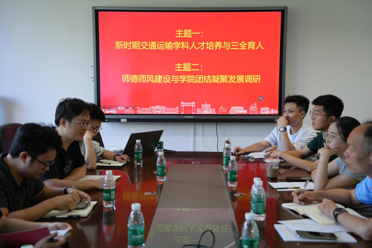 为扎实推进深入贯彻中央八项规定精神学习教育,7月4日上午,韩国无码 在交通楼322会议室召开新进教师调研座谈会。韩国无码 党委副书记李苑主持会议,周汉楚等11位青年教师围绕“新时期交通运输学科人才培养与三全育人”“师德师...