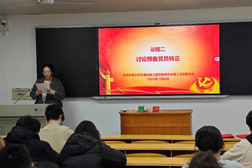 会议第二项议程为讨论预备党员转正事宜。陈佳琦、唐鑫两位拟转正同志依次上台宣读转正申请书,并结合预备期间的表现情况进行全面汇报。随后,支委会宣读了对两位同志的审查报告,经审查,陈佳琦、唐鑫两位申请人政治素养良好,能够严格以党员标准要求自己,积极发挥先锋模范作用,符合正式党员条件。经与会正式党员充分讨论后,大会采取无记名投票方式表决,根据投票结果与支部大会讨论决定,同意陈佳琦、唐鑫按期转正。