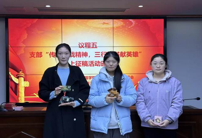 此外,支部还为以“传承抗战精神,三行情书献英雄”为主题的三行情书征稿活动的获奖同志颁发了奖品。此次活动以独特新颖的形式激发了同志们的爱国热情,展现了他们深厚的家国情怀。