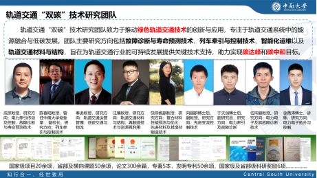 团队目前有成员9人,其中教授4人,副教授4人,讲师1人。团队主持国家重点研发项目课题、国家自然科学基金等项目20余项,省部及企业横向课题50余项,发表论文300余篇,出版专著5本,授权专利50余项,获国家级及省部级科研奖励6项,孵化创新型科技企业两家,实现技术转化10余项。实验条件完善,热忱欢迎海内外学者、工程技术人员及青年学子加入轨道交通 “双碳” 技术的研究行列,携手推动绿色交通发展,为我国实现高水平科技自立自强和民族复兴贡献智慧与力量。