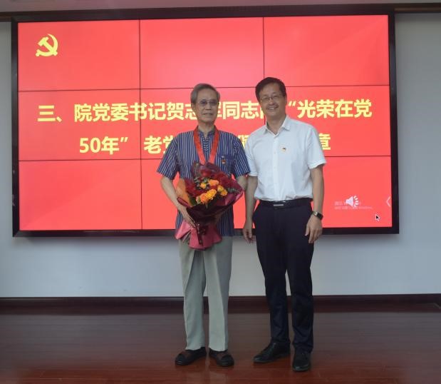 党委副书记宋晓东主持,党委书记贺志军、院长高广军、院党委班子成员、在党50年的老党员代表、受表彰的党员及师生党员代表参加了本次会议。