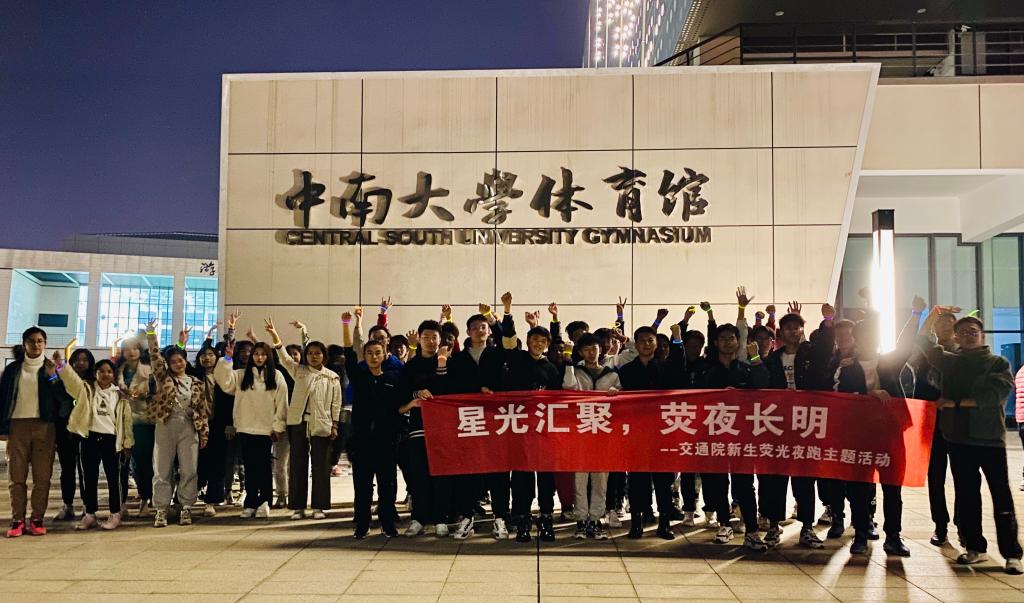 新体育馆顺利开展。活动期间,21级辅导员张健老师、王羽珊老师带领交通院21级各班同学齐聚体育馆,踏荧光点点校园路,尽情挥洒青春汗水!
