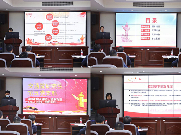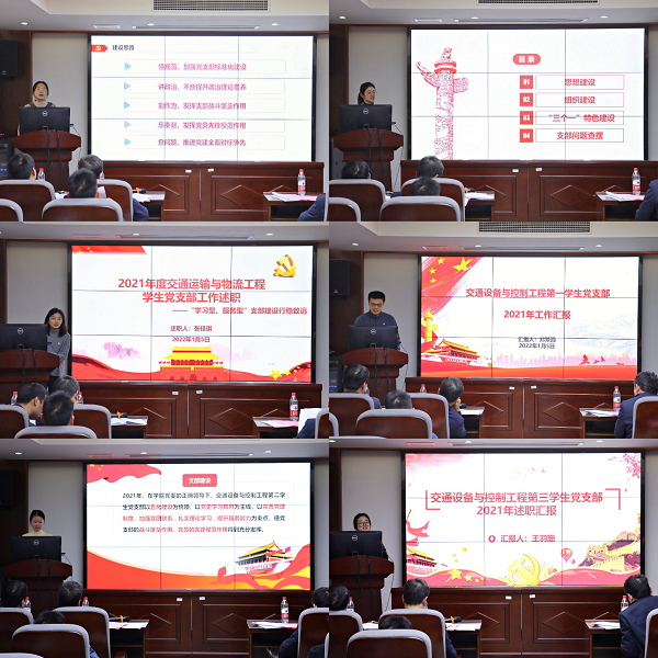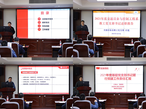 首先由各个支部书记就本年度支部和个人工作进行述职,最先进行汇报的是教职工党支部书记。交通运输系教工党支部、交通设备与控制工程系教工党支部、物流工程系教工党支部、高速列车研究中心教工党支部的4个支部书记分别从支部2021年的基本工作情况、书记的履职情况、教职工党员这一年的科研成果、支部的组织生活等方面都进行了详细介绍,同时也都指出了这一学年在支部建设中存在的问题,以及未来改进的方向。韩国无码