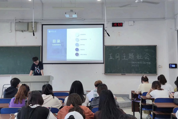 班会上,各班班长首先介绍了近几年实验室安全事故的案例,然后对实验室事故进行分类,主要包括:火灾事故、生物安全事故、设备损坏事故、爆炸事故、毒害事故、机电伤人事故,同时对事故原因进行分析。为了避免发生意外事故,班长向同学们提出以下要求:初次进入实验室的同学切记不要盲目动手,一定要多看、多听、多问、多想,严格按照教师的指导进行实验;实验室内必须常备足够的消防用具,学生也需掌握这些设施的使用方法以应对突发情况,一旦出现事故,依照事故类型采用正确的消防措施,一旦做好紧急处理即刻撤离现场并报告负责人前来进行妥善处置;实验室的各类物资一定要进行严格的区分,在实验完成后一定要将物品归回原位,并做好卫生工作。
