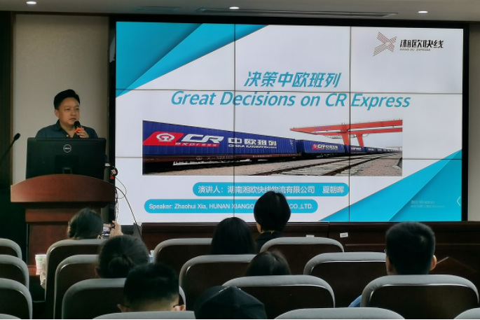 报告会伊始,冯芬玲教授向到场听众介绍了夏朝晖先生。夏朝晖,高级物流师,现任长沙湘欧快线物流有限公司总经理、中欧班列联盟秘书长,是湖南中欧班列建设的开创者。夏朝晖先生于1995年本科毕业后参加铁路工作,自2008年起,代表铁路配合湖南省政府先后建成了长沙树木岭和铁路北站口岸,他参与的重点开发运营项目包括五定班列、内陆港、湘欧快线国际班列等。