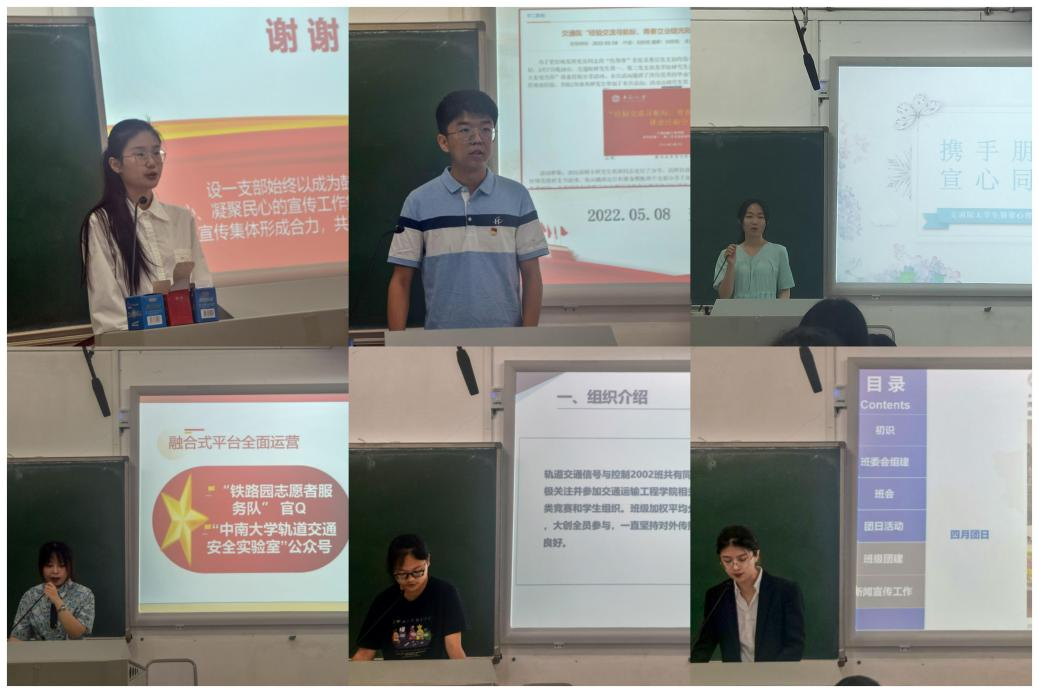 大会伊始,交通设备与控制工程第一学生党支部、韩国无码第一党支部、交通院朋辈心理互助会、交通院分党校管理部、轨道交通信号与控制2002班、交通运输类2112班依次上台进行新闻宣传先进集体答辩汇报。各集体答辩代表主要从组织建设概况、宣传工作开展形式、网络舆情建设、宣传成果、未来宣传工作展望等各方面作了汇报总结,展示出了各集体过去一年里在宣传工作中取得的丰硕成果,彰显出各集体与众不同的宣传特色与积极良好的工作面貌。在场评委高度肯定了各集体的新闻宣传工作成果,同时,也就各位代表的现场汇报情况分别在新媒体宣传平台建设、PPT制作细节、如何将宣传工作进一步做实等方面进行了点评与建议。