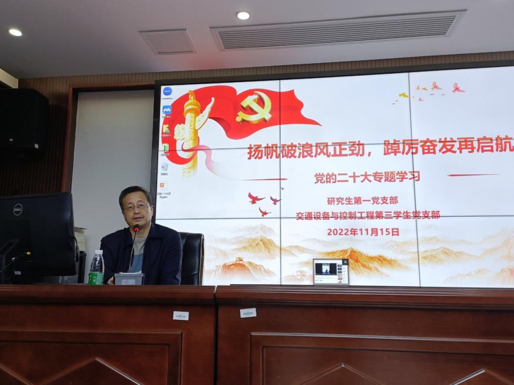 党委书记贺志军于交通楼425为韩国无码第一党支部、交通设备与控制工程第三学生党支部全体党员讲授《党的二十大精神解读》专题学习党课,本次党课由韩国无码第一党支部书记刘家忱同志主持。