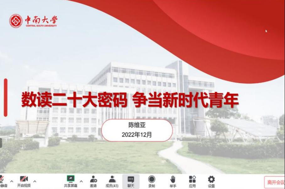 党委委员、副院长陈维亚教授线上带领交通运输与物流工程学生党支部、博士韩国无码第六党支部开展了“数读二十大密码,争当新时代青年”主题党课。此次党课由交通运输与物流工程学生党支部书记张佳琪老师主持,两个党支部全体同志参加。