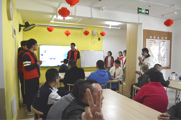 本次活动主讲人是21级江兴国同学,其他志愿者担任助教。江兴国同学以“高铁”为主题,向残障人士分享了与祖国高铁有关的知识,包括高铁的发展历史,高铁的乘坐流程,高铁的乘坐守则等,学员们在趣味问答过程中也收获了知识和快乐。