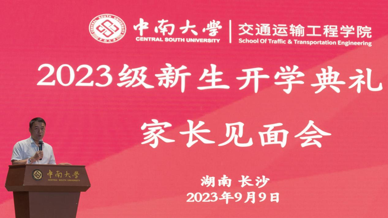 党委书记贺志军,院长高广军,党委副书记宋晓东,副院长张英贵、陈维亚、韩锟、刘辉,高速中心支部书记鲁寨军,教授委员会主席姚松,运输系党支部书记叶峻青,设备系副主任李蔚出席会议。与会人员还有23级新生班导师代表,学工办主任樊佳俊,学工办副主任张佳琪,团委书记张健,各年级辅导员,以及2023级全体新生、家长代表。会议由宋晓东副书记主持。