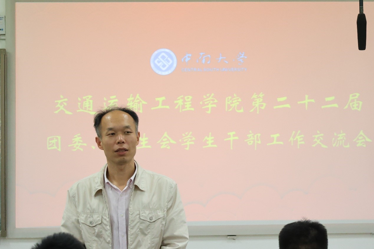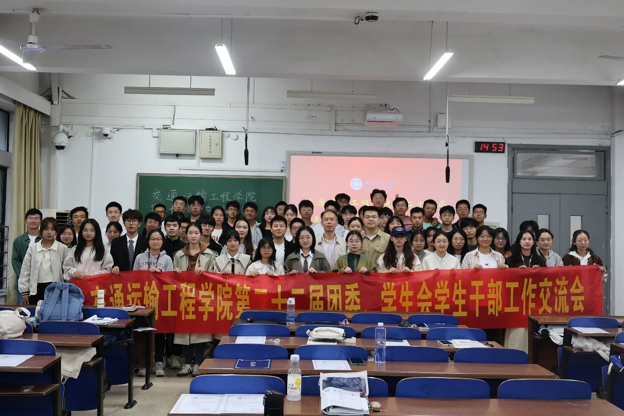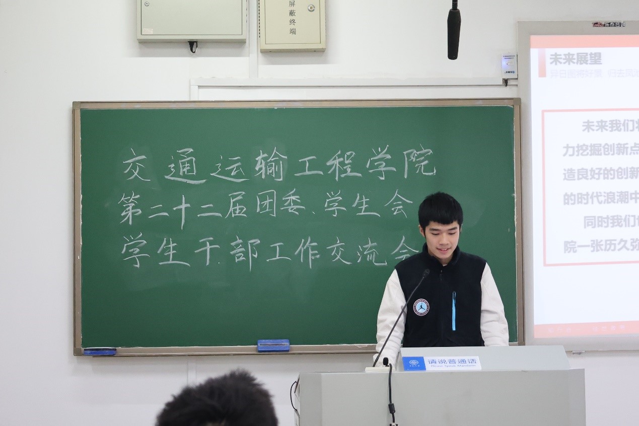 之间的桥梁和纽带;传承贯彻优良的工作经验并发扬光大。他强调,交院同学的自豪感、集体荣誉感来自所有人的共同努力,学生干部要时刻牢记自身使命,为交通院的发展贡献自己的力量