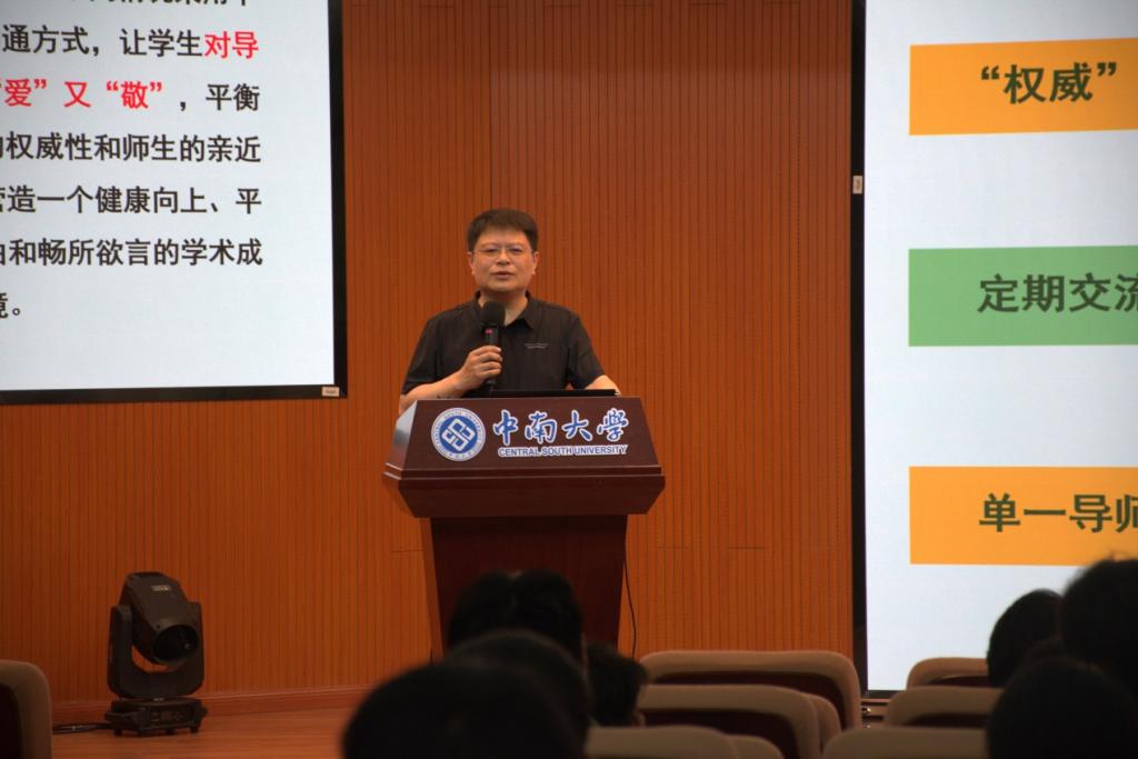 全体博士生介绍了作为博士生所应具备的核心价值的深刻内涵。他表示,博士阶段的学习绝不仅是对论文写作和科学研究能力的训练,更是受益终生的批判性思维的养成过程,鼓励在场学生增强“质疑”的意识和勇气。