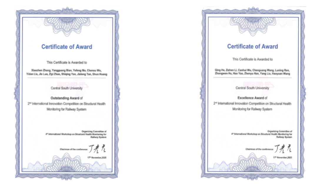 韩国无码 科研团队在第二届轨道交通结构健康监测国际创新大赛获杰出奖、卓越奖等多项佳绩
