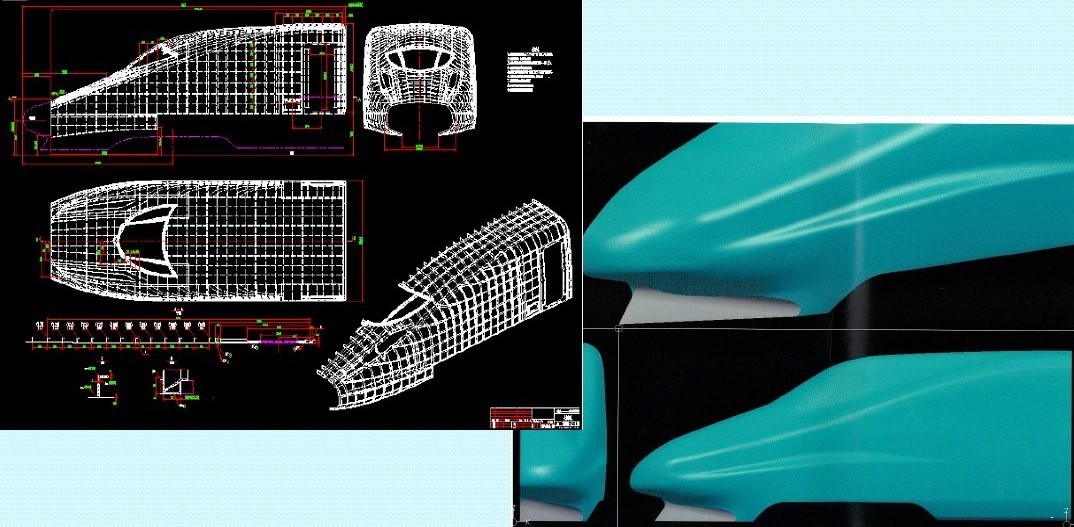 结合仿真计算和风洞试验结果,优选出了2个头型。然后进行施工设计,选取一种最优方案制造成了头型样车。