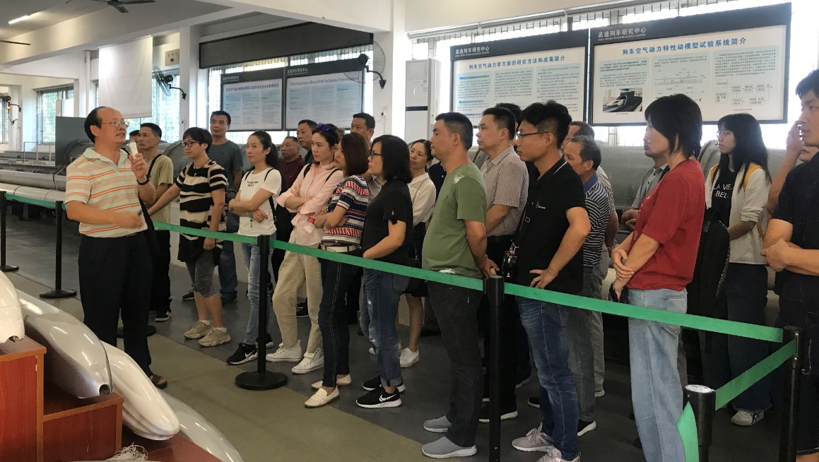 老师的带领下,“长沙国际铁路港铁路物流园区管理及公司制改革第一期培训班(39人)”和“广州局集团公司2019年消防安全管理人员第一期培训班(94人)”来访参观高速中心。学员参观了列车空气动力学动模型实验室、碰撞试件室外展示现场等,高速中心张健老师负责讲解与接待工作。