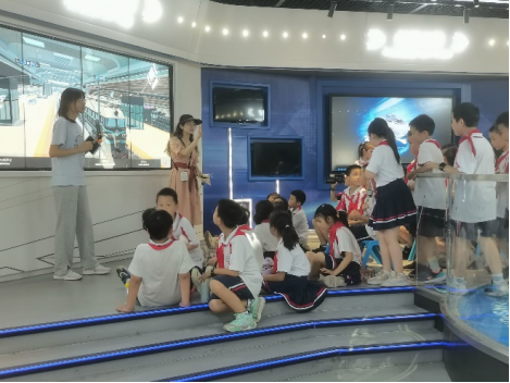 在志愿者的带领下,可爱又活泼的同学们走进了充满科技感的科普馆,志愿者为大家讲解了科普馆的发展历史、场馆分布和具体内容。首先志愿者为同学们播放了“风一样的团队”宣传片,一起领略了轨道交通行业工程师们的风采。观看完宣传片之后,志愿者随即向大家展示了列车机车的发展历程:从蒸汽机车到内燃机车再到电力机车,最后到动车组。接下来志愿者用触摸屏为同学们展示了列车的基本构件和运行原理。
