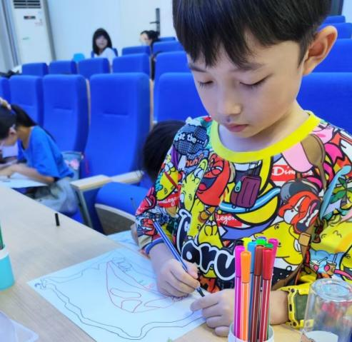 紧接着,在志愿者的有序引导下,同学们进行了“画出心中的火车” 绘画活动。一笔一划之间,或是天马行空,或是栩栩如生,同学们用色彩和线条描绘出了自己心目中独一无二的火车。