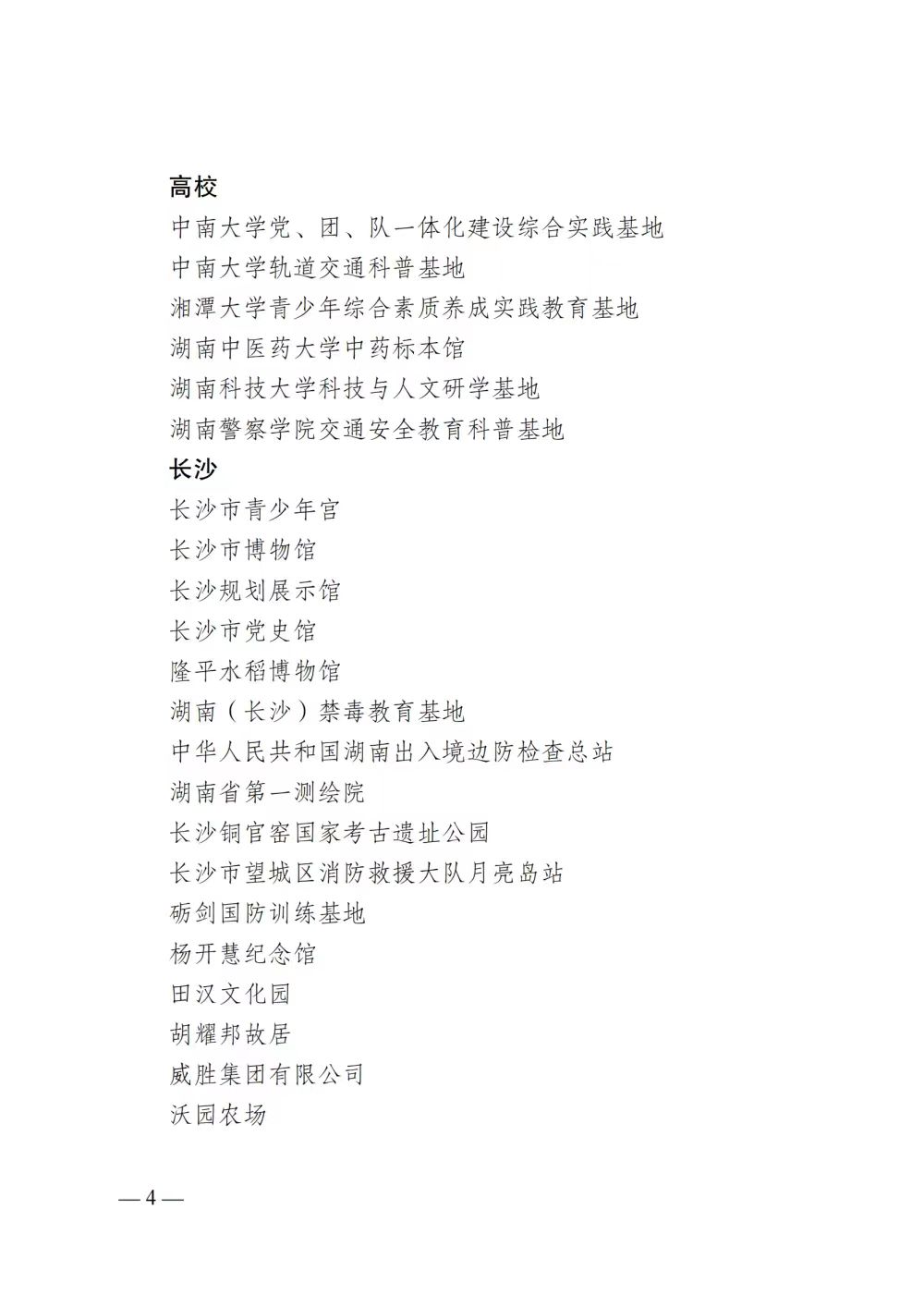 各市州团委、少工委,省直团工委,高校团委:为深入贯彻落实党的二十大精神,深学笃行落实习近平总书记关于少年儿童和少先队工作的重要论述,全面落实《中共中央关于全面加强新时代少先队工作的意见》和《中共湖南省委关于全面加强新时代少先队工作的实施意见》精神,加快落实《关于构建新时代湖南少先队社会化工作体系的实施意见》要求,建立校内外互为补充、有机联动的少先队实践教育体系,进一步推动新时代全省少先队社会化发展,经单位自主申报、市州审核推荐、省级综合评定,团省委、省少工委决定命名毛泽东同志纪念馆等100家单位为首批湖南省少先队校外实践教育营地(基地)。