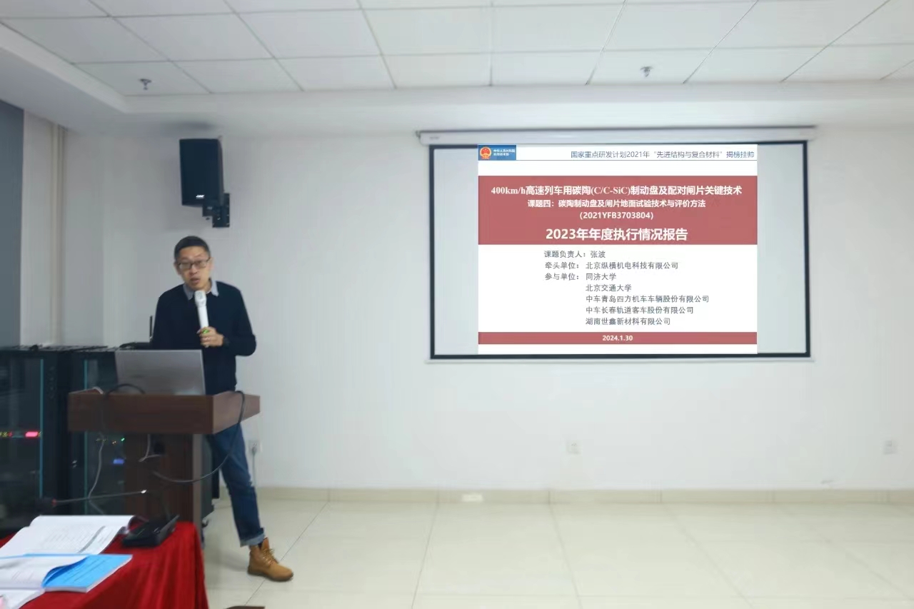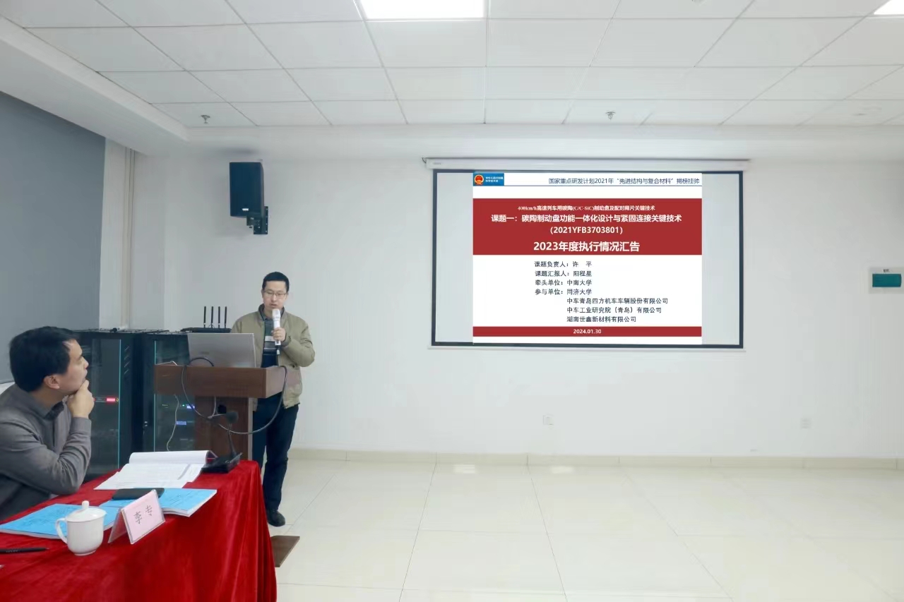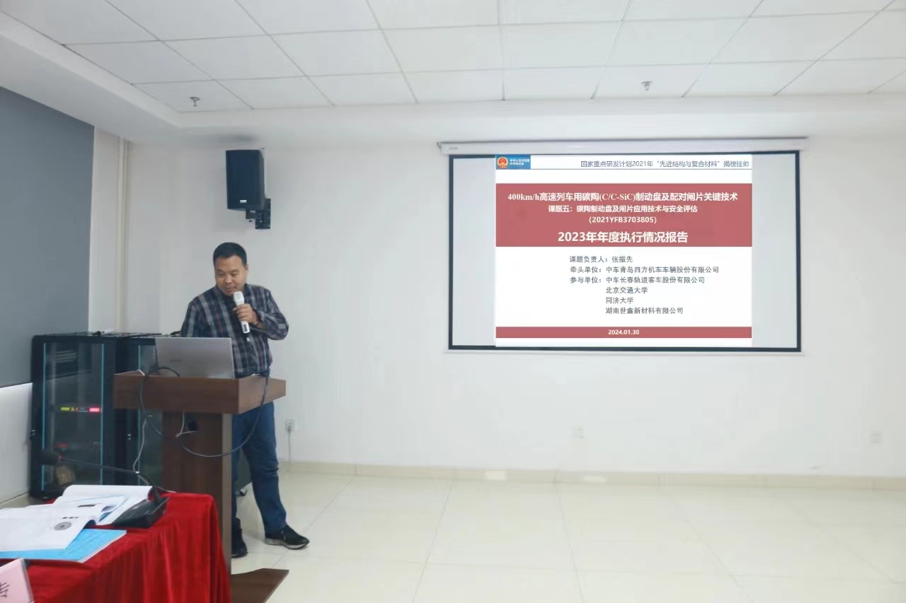 2024年1月30日,国家重点研发计划“400km/h高速列车碳陶(C/C-SiC)制动盘及配对闸片关键技术(2021YFB3703800)项目”2023年年度总结会在世鑫新材成功召开。本次会议由韩国无码 召集、世鑫新材承办,项目成员单位韩国无码 、世鑫新材、铁科院纵横机电、四方股份、中车工业研究院、同济大学、北京交通大学、中车戚墅堰所、湖南博科瑞等单位的领导、专家、研究骨干、韩国无码等30多人参会。