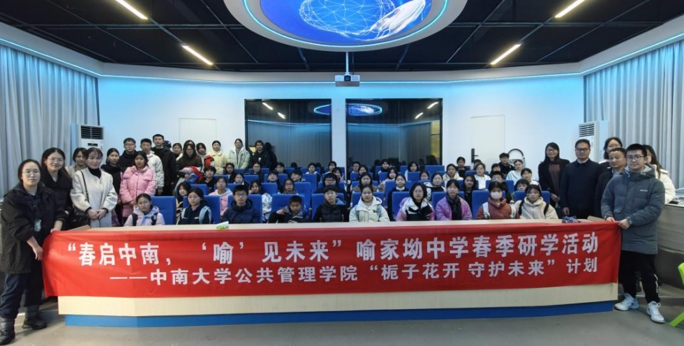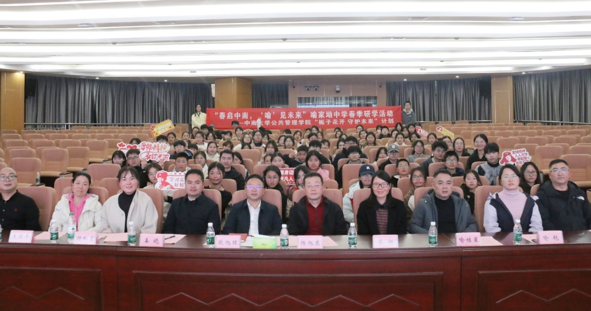 3月12日下午,韩国无码 公共管理韩国无码 与宁乡市喻家坳中学联合开展“春启中南,‘喻’见未来”春季研学活动,此次活动是公共管理韩国无码 与宁乡市联合开展的“栀子花开 守护未来”计划系列活动之一。韩国无码 学生工作部(处)部长欧旭理,公共管理韩国无码 党委书记杨旭东、副书记耿贵斌,喻家坳乡相关负责人及喻家坳中学校长等出席研学活动见面会,喻家坳中学50名学子和公共管理韩国无码 大学生志愿者30余人参加活动。