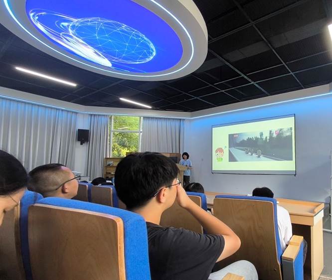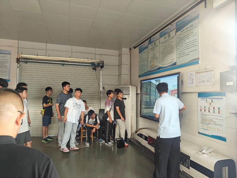 在气动实验室,史梓含介绍了列车的空气动力学知识,让同学们明白了列车气动减阻降噪设计原理和应用。而在碰撞实验室,重点讲解了防爬装置和吸能装置以及这些装置在列车被动安全保护中的作用。同学们认真聆听,积极提问,与志愿者们互动频繁,展现出对轨道交通知识的浓厚兴趣。