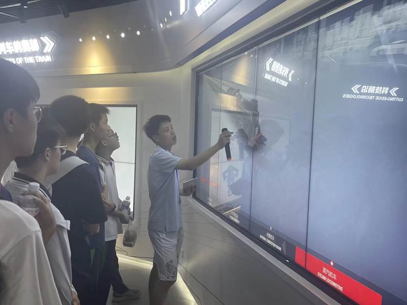 轨道交通科普基地,在志愿者马彦俊、史梓含的带领下,开启了一场充满科技感的轨道交通知识探索之旅。